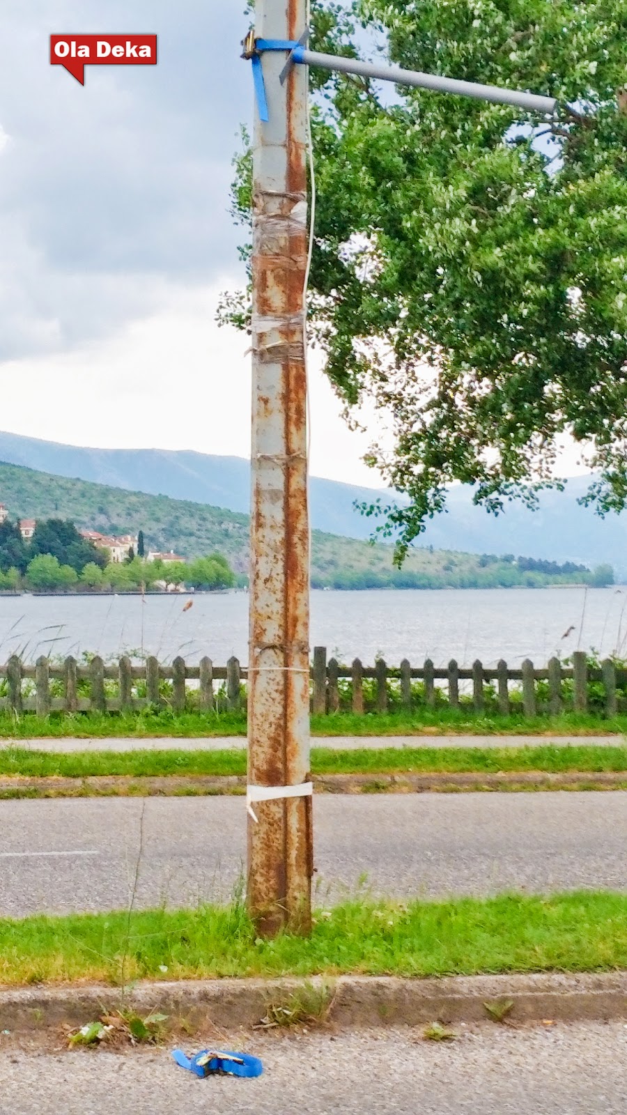 Εκτός του θέματος ρύπανσης μιας πόλης που προσπαθεί να πουλήσει μια εικόνα καθαρού, αρχοντικού και φυσικού περιβάλλοντος (δείτε την ασχήμια σε όλο της το μεγαλείο) σήμερα έτυχε ο στρατηγός αέρας να εκθέσει και άλλο τους αρμόδιους του δήμου Καστοριάς. Τα δυνατά μποφόρ ξέσκισαν ακόμη και τις πολύ δυνατές κατασκευές δεσίματος πάνω στους στύλους φωτισμού στην κύκνων. Αυτό το δυνατό δέσιμο όμως λειτουργεί ακόμη πιο επικίνδυνα όταν ο αέρας ή κάποια άλλη δύναμη τα νικήσει. Όταν αυτοί οι σιδηρολοστοί που δέθηκαν με πανίσχυρους ιμάντες και μεταλλικές καστάνιες πάνω στους στύλους σπάσουν και εκσφενδονιστούν με μανία στον αέρα, τότε γίνονται φονικά όργανα που αιωρούνται διαβολικά και …όποιον πάρει ο χάρος. Φανταστείτε ένα από αυτά τα σιδερικά να αποκολληθεί και με δύναμη να προσγειωθεί στο παρμπρίζ διερχόμενου οχήματος (που έχει και αυτό την ταχύτητα του, άρα πολλαπλασιάζει τη σφοδρότητα της σύγκρουσης) ή στο κεφάλι ενός παιδιού που τυχαίνει να βαδίζει εκείνη τη στιγμή στο σημείο.