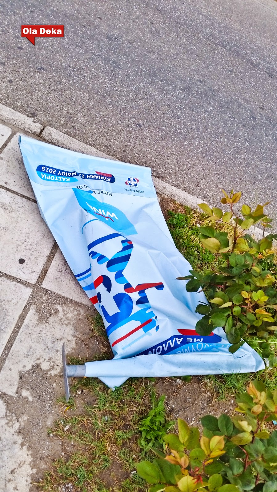 σφύριζαν σαν σφαίρες πάνω από τα κεφάλια περαστικών και αυτοκινήτων όταν αποκολλήθηκαν από τις διαφημιστικές κατασκευές του run Greece που τοποθετήθηκαν σε στύλους φωτισμού της Λεωφόρου των Κύκνων.Μάλλον από τύχη δεν θρηνήσαμε θύματα.