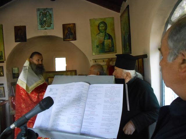 Στο ψαλτήρι ο παπα Νικόλας, με τους λοιπούς ψαλτάδες, τους Ηλία Παπαδόπουλο, Στέργιο Θωμόπουλο, Χρίστο Νικόπουλο, Χρήστο Ζησιάδη, ενώ το εκκλησίασμα στέκονταν στο πέριξ προαύλειο, κάτω από το παλιό πλατάνι που φύτεψε ο παππούς Νάτσης Δημητρίου-Κοβάτσης το 1926, μαζί με το “τάμα” του,το παρακείμενο μικρό Εκκλησάκι της Παναγίας στην ίδια θέση.