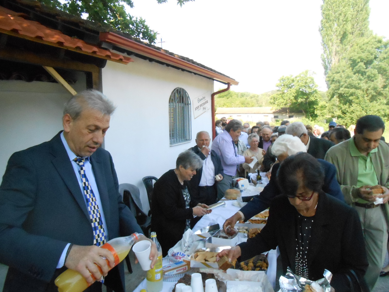 Μετά την Θεία Λειτουργία,η Εκκλησιαστική Επιτροπή (Βαγγέλης Αντωνόπουλος,Διαμαντής Κοβάτσης,Άλέκος Μάλαμας,με την βοήθεια και άλλων χωριανών που πάντα βοηθούν την εκκλησία,όπως η Μαίρη Γεωργιάδου,ο Κώστας Μιχαλόπουλος κ.ά) είχαν ποικίλα κεράσματα για όλους.