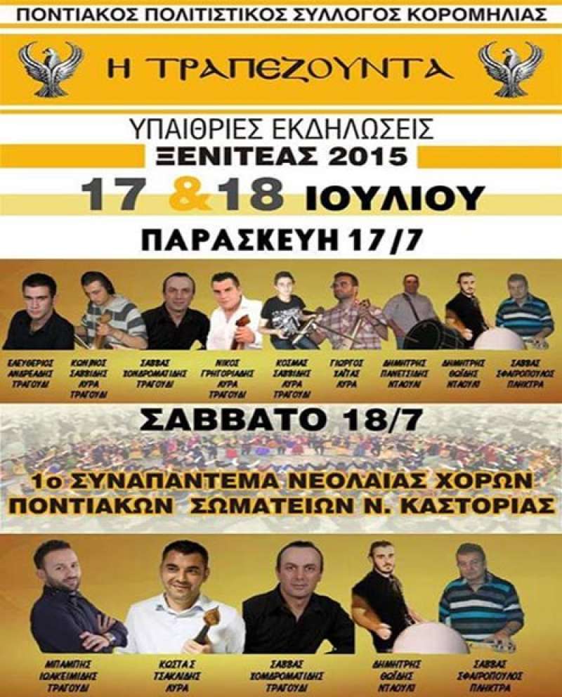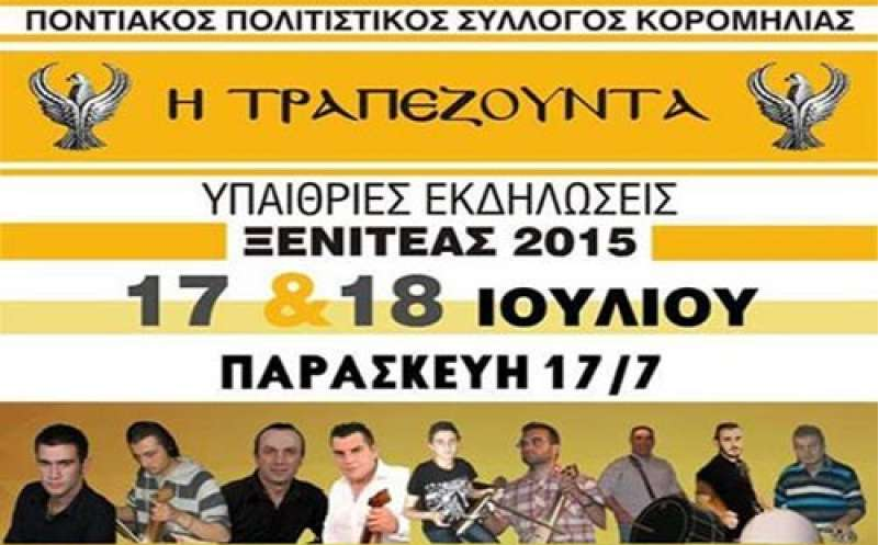 Ο Σύλλογος Ποντίων Κορομηλιάς “Η ΤΡΑΠΕΖΟΥΝΤΑ” διοργανώνει την καθιερωμένη ετήσια χοροεσπερίδα.