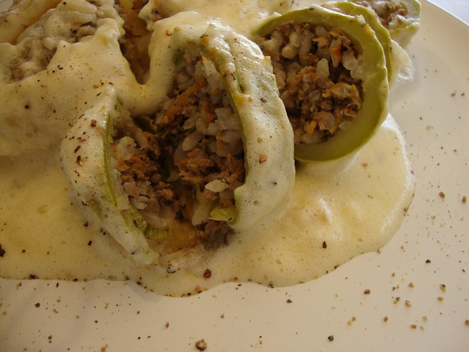 σε ένα λεκανακι ριχνουμε όλα τα υπόλοιπα υλικά μας και κάνουμε ένα μιγμα αφράτο αν δείτε ότι η γέμιση είναι σφιχτή βάζετε λίγο νεράκι να μαλακώσει και γεμίζετε!!!