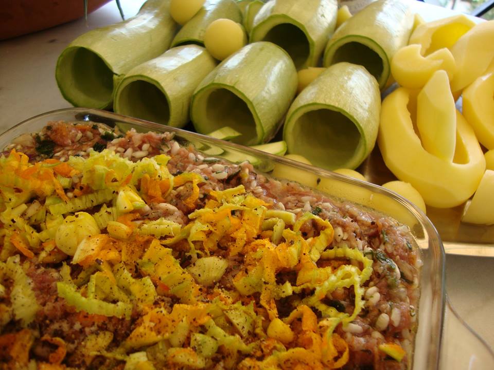 Πλένουμε και καθαρίζουμε τις παταες και τα κολοκυθάκια μας και τα ανοίγουμε κρατώντας καπάκια από αυτά!!!