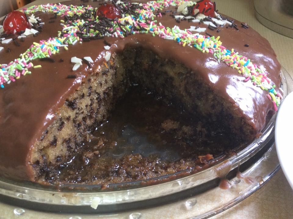 .Για να φτιάξω την επικάλυψη, βγάζω σε κατσαρολάκι την μαργαρίνη να ζεσταθεί και αφού έχω ανακατέψει σε ένα μπολ τα υπόλοιπα  υλικά ,τα ρίχνω κι αυτά στο κατσαρολακι και ανακατεύω μέχρι να πήξει το μείγμα.Τέλειο γλυκό.