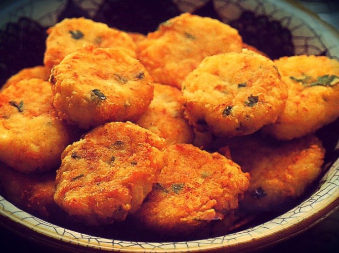 Βάζουμε το λάδι σε ένα τηγάνι να κάψει και στο μεταξύ πλάθουμε το μίγμα σε κεφτεδάκια που αλευρώνουμε.