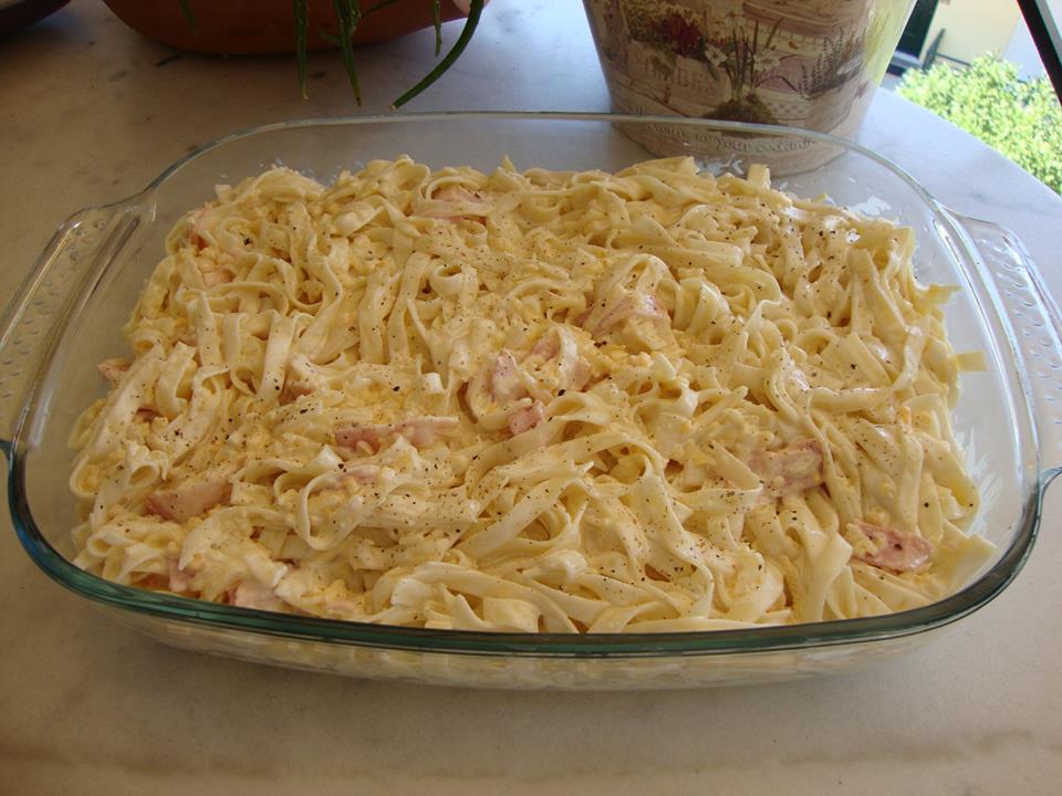 βράζουμε τις ταλιατέλες σε μπόλικο νερό και με με λίγο λαδάκι για 8 λεπτά στην συνέχεια τα σουρώνουμε και τα αφήνουμε να κρυώσουν λιγάκι η’ αν θέλετε ρίχνετε λίγο κρύο νεράκι να τα βοηθήσετε να κρυώσουν και τις μεταφέρετε στην κατσαρόλα!