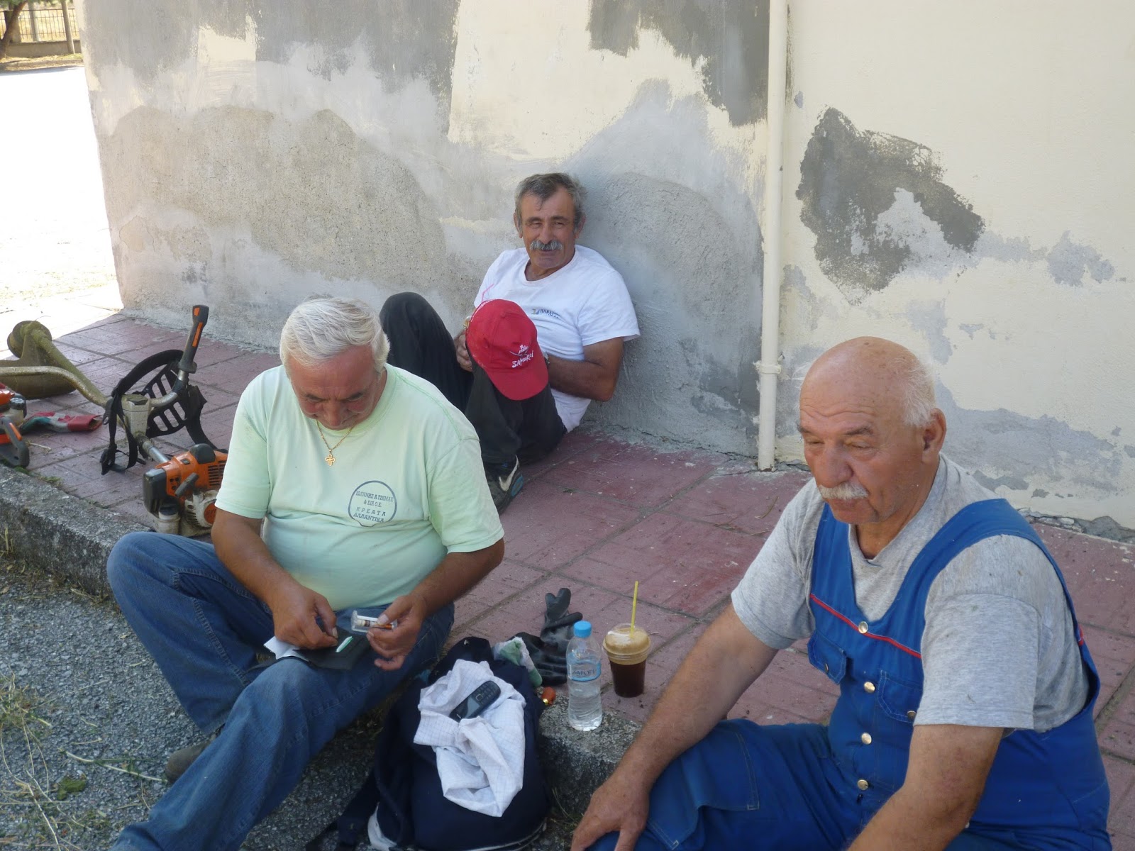 Ο Σωτήρης και ο Στέλιος, συνεπικουρούμενοι από το Θωμά, και το Γιάννη, κάτω από τον καυτό ήλιο έδωσαν όλες τους τις δυνάμεις, όπως εξάλλου κάνουν πάντοτε, δικαιολογώντας το μεροκάματό τους με το παραπάνω.
