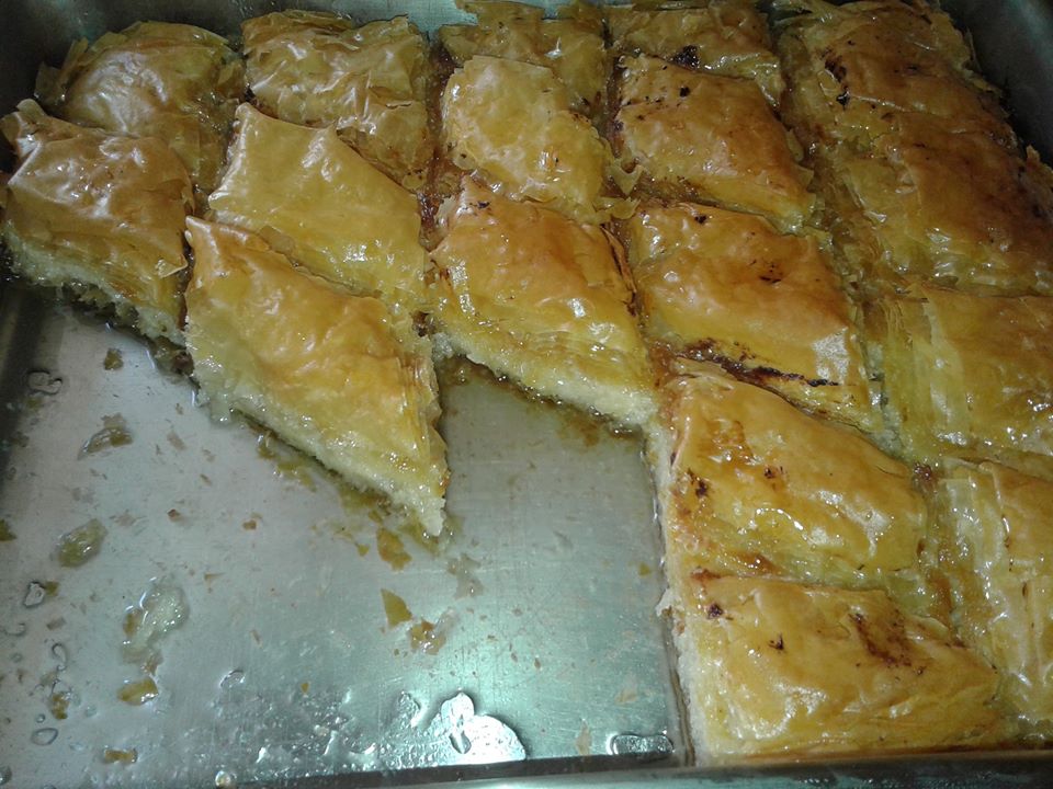 προσθετουμε τη βανιλια και τα 70 γρ βουτυρο και ανακατευουμε πολυ καλα. Βουτυρωνουμε το ταψι μας και στρωνουμε ενα ενα τα φυλλα βουτυρωνοντας το καθε ενα (5 φυλλα κατω). Βαζουμε τη κρεμα και στρωνουμε τα υπολοιπα φυλλα πανω βουτυρωνοντας το καθε ενα. Χαραζουμε σε κομματια και ψηνουμε στους 170 αντιστασεις σε καλα προθερμασμενο φουρνο για 1 ωρα και 20 λεπτα. Μολις το βγαλουμε ζεστο ριχνουμε το κρυο σιροπι και το αφηνουμε να κρυωσει.
