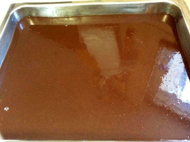 .Ρίχνω την κρέμα ζεστή στο κρύο παντεσπάνι.μόλις κρυώσει η κρέμα λιώνω την σοκολάτα με το εβαπορέ σε Μπεν Μαρί και την απλώνω πάνω της.