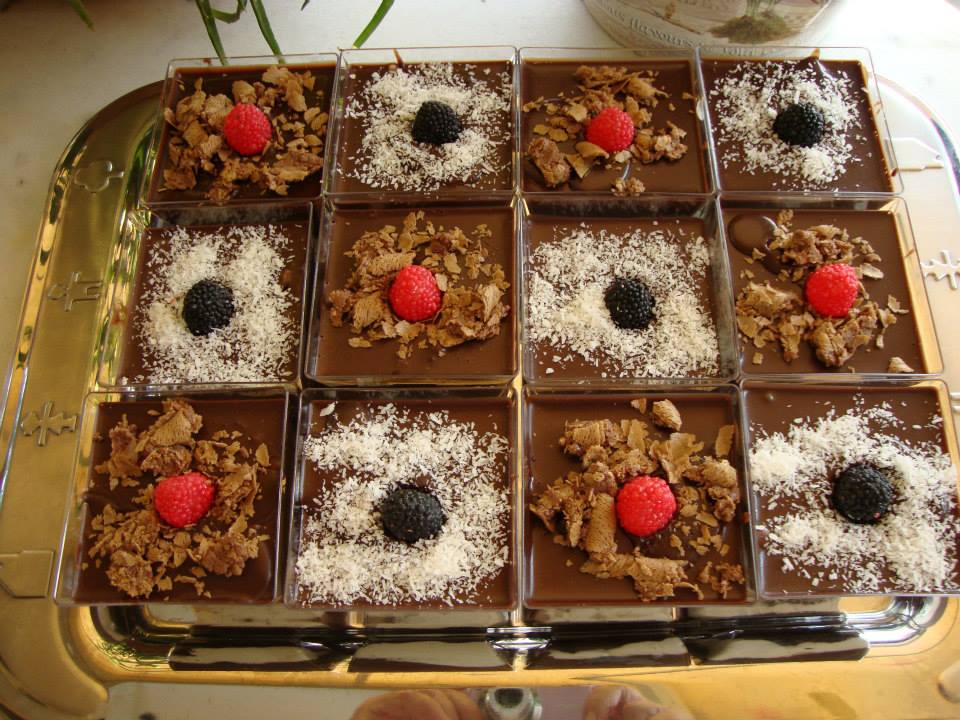 για να κάνω ατομικά παστάκια κόβω στο μέγεθος του ποτηριού που θέλω να κάνω το παστάκι μου και βάζω την κρέμα και από πάνω την σοκολάτα!!! ο στολισμός είναι στην δίκη σας φαντασια!!!!