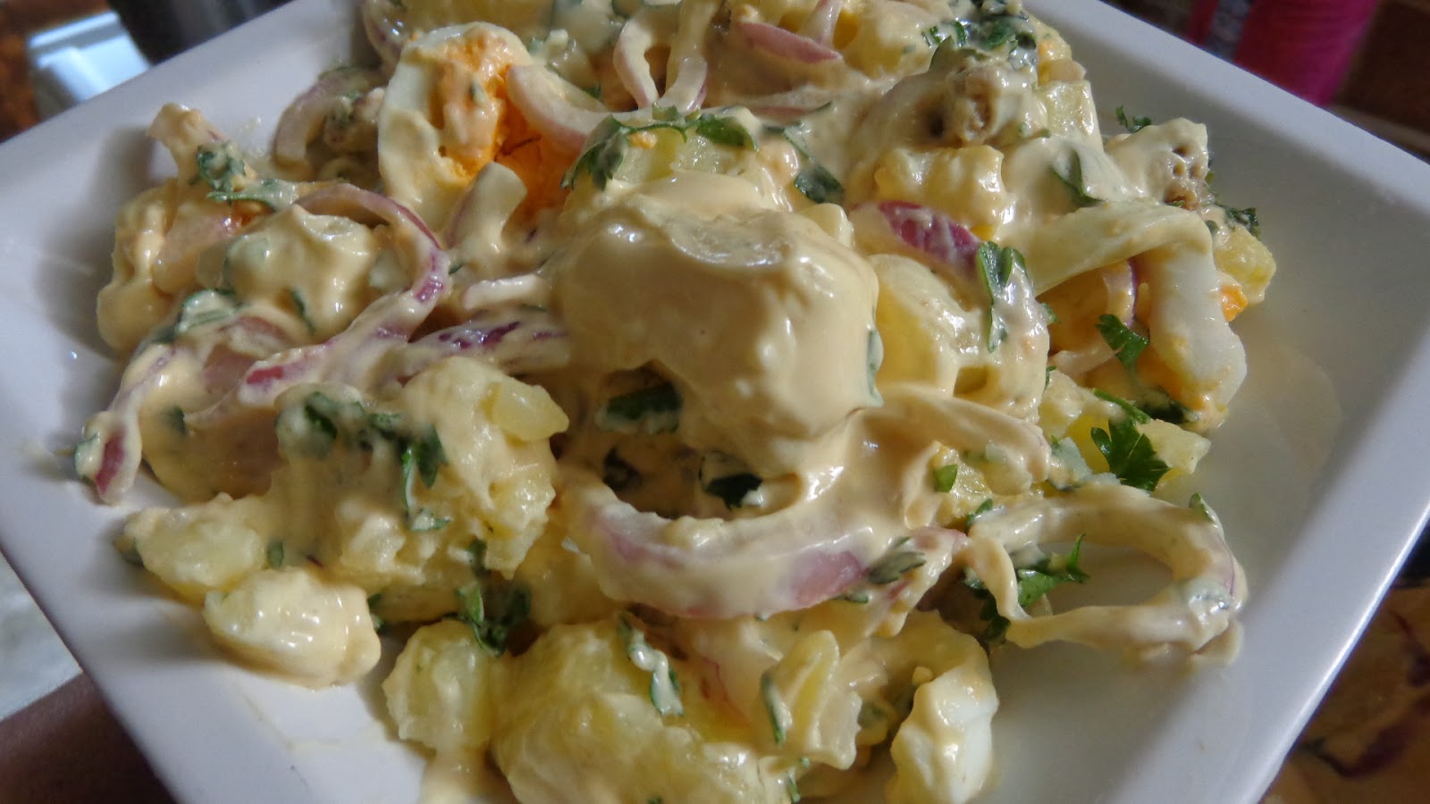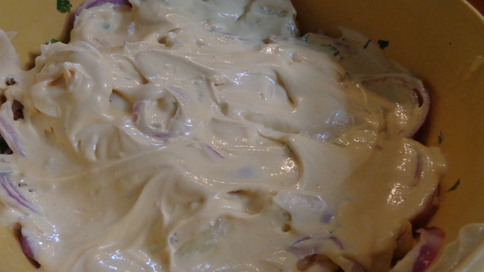 Σκεπάζουμε με αυτό το μείγμα την σαλάτα μας κι όταν έρθει η ώρα για να σερβίρουμε ανακατεύουμε ,Καλή επιτυχία !! Είναι τέλεια !!