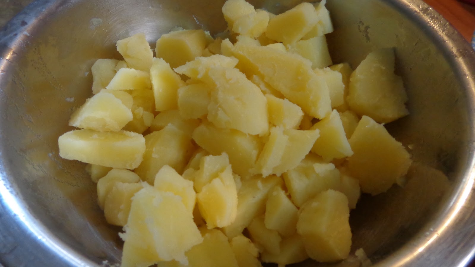 Όταν κρυώσουν τις καθαρίζουμε και με ένα πιρούνι τις ανοίγουμε σε κομματάκια μέσα στην σαλατιέρα μας .