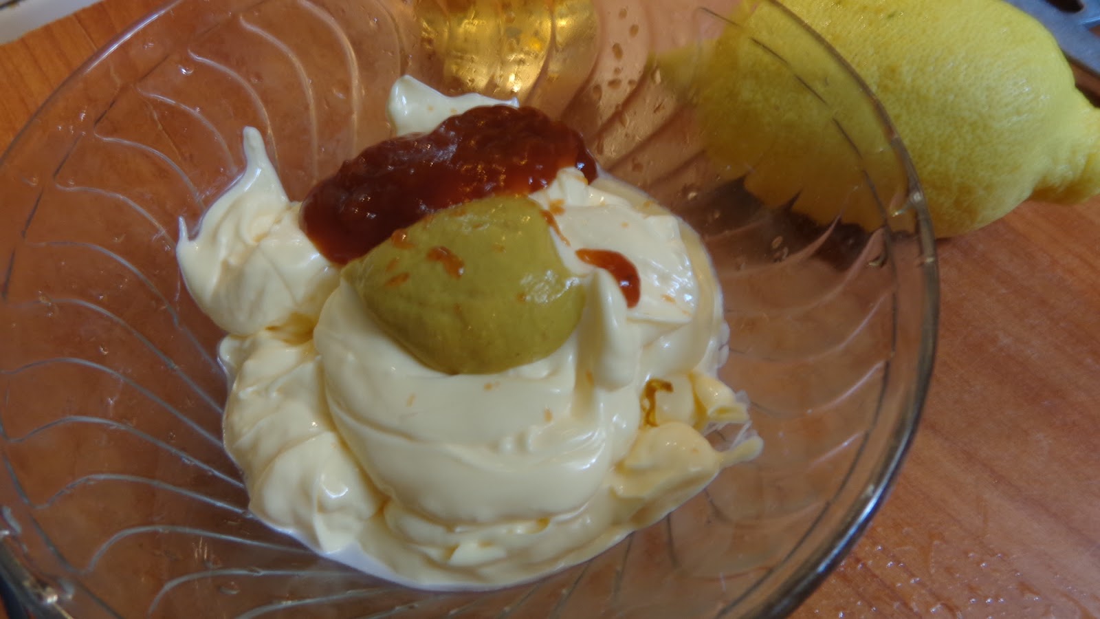 Βάζουμε σε βαθύ πιάτο η καλύτερα σε μπολάκι τα υλικά μαγιονέζα γιαούρτι μυλόξυδο κέτσαπ 1 κουταλάκι του γλυκού λάδι και την μουστάρδα.