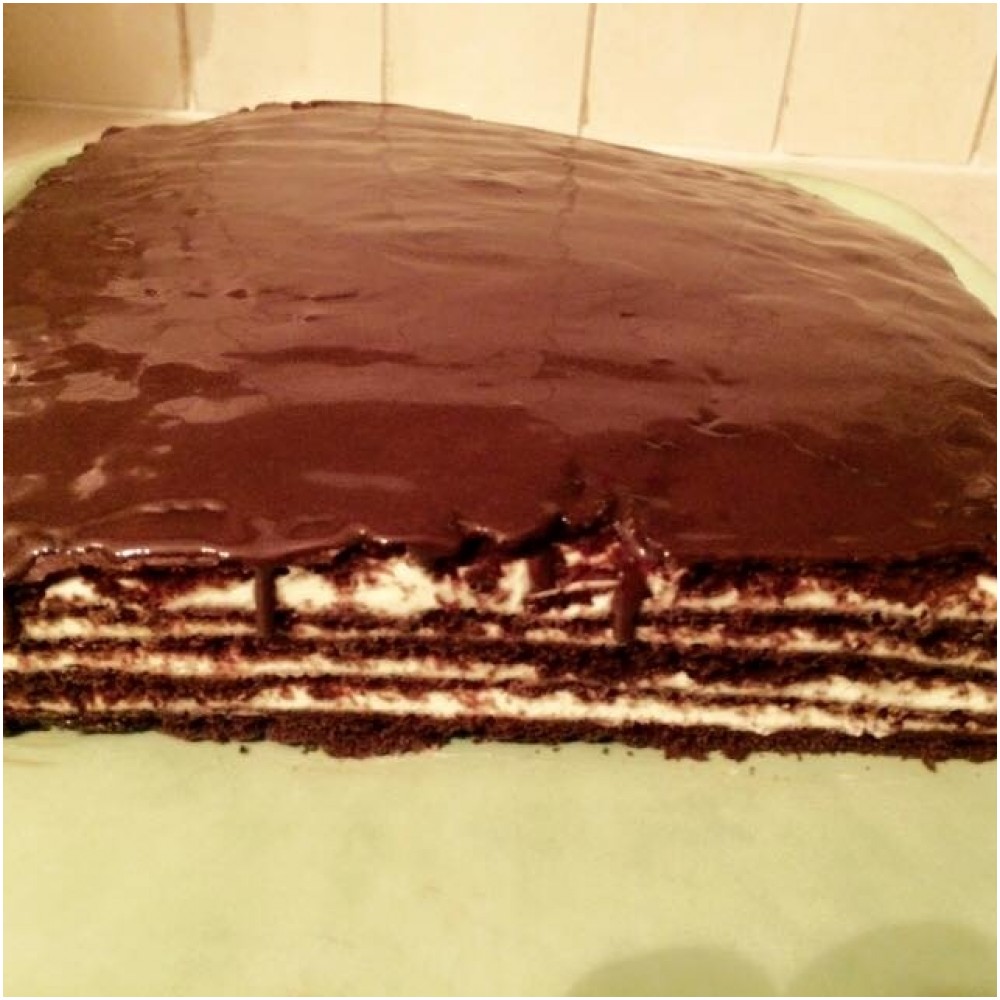 Τελειώνουμε τη διαδικασία κάνουμε τη κρέμα   με 500 γρ μασκαρπόνε ,600 γρ κρέμα γάλακτος ,200 γρ ζάχαρη ,2 βανίλιες όλα μαζί χτυπάμε στο μίξερ γίνετε ενα άσπρο μείγμα οπότε ξεκινάμε ενα φύλλο από πάνω κρέμα μέχρι τέλος στο τελευταίο δεν βάζουμε κρέμα η αφήνουμε έτσι η σοκολάτα λιωμένη κουβερτούρα σε μπεν Μαρι.