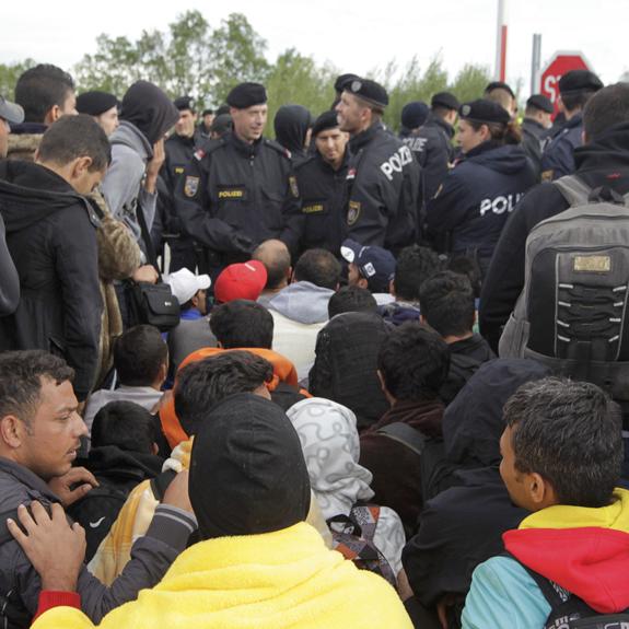 Migrants wait to board buses to take them onwards to the train station, from the border crossing in Nickelsdorf, Austria September 6, 2015 REUTERS/Srdjan Zivulovic