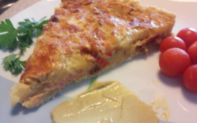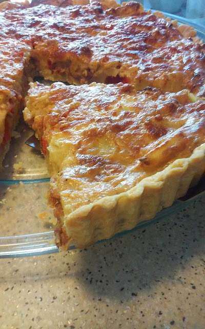 Στρωνω τη ζυμη σε λαδωμενη ταρτιερα ριχνω και τη γεμιση απο πανω λιγο τυρι τριμμενο και ψηνω σε 170 βαθμους για 30 με 40 λεπτα