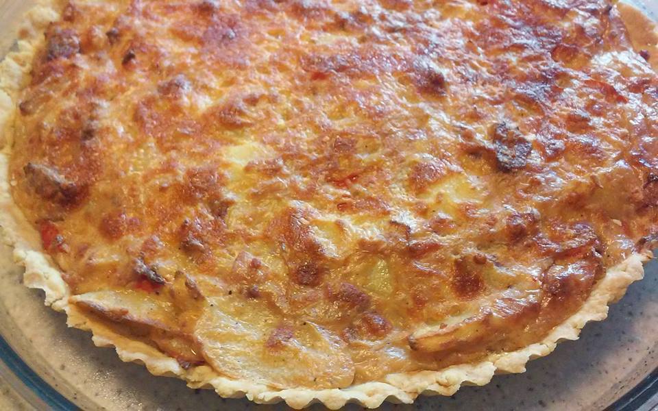 Στρωνω τη ζυμη σε λαδωμενη ταρτιερα ριχνω και τη γεμιση απο πανω λιγο τυρι τριμμενο και ψηνω σε 170 βαθμους για 30 με 40 λεπτα