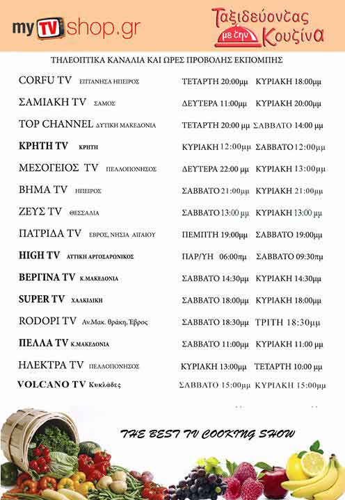 Η εκπομπή ξεκίνησε να μεταδίδεται σε 15 περίπου περιφερειακά κανάλια και αυτήν την Τέταρτη 8:00 μμ και το Σάββατο 14:00 το μεσημέρι θα μεταδοθεί και στο Top chanel της Κοζάνης.