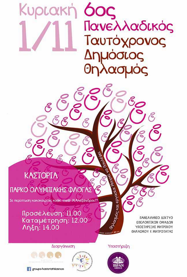 Το ΠΑΝΕΛΛΗΝΙΟ ΔΙΚΤΥΟ ΕΘΕΛΟΝΤΙΚΩΝ ΟΜΑΔΩΝ ΥΠΟΣΤΗΡΙΞΗΣ ΜΗΤΡΙΚΟΥ ΘΗΛΑΣΜΟΥ ΚΑΙ ΜΗΤΡΟΤΗΤΑΣ , διοργανώνει τον 6ο Πανελλαδικό Ταυτόχρονο Δημόσιο Θηλασμό σε περισσότερες από 45 πόλεις της Ελλάδας!