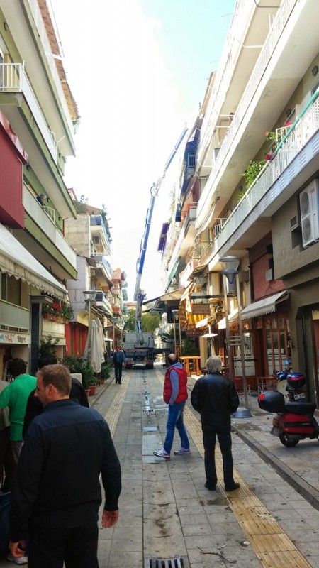 Απομακρύνθηκε με ασφάλεια από τα εξειδικευμένα συνεργεία και γερανοφόρο όχημα η επικίνδυνη λαμαρίνα-σκέπαστρο ταράτσας οικοδομής στον πεζόδρομο της Πτολεμαΐδας, που λόγω της σφοδρής καταιγίδας που έπληξε την πόλη σήμερα τα ξημερώματα αποκολλήθηκε από τη θέση της. Δείτε καρέ-καρέ την επιτυχή απομάκρυνση της ογκώδους αυτής κατασκευής.