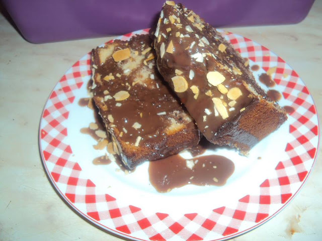 Χτυπάμε τα αυγά μαρέγκα,ρίχνουμε τους κρόκους με την ζάχαρη…χτυπάμε λίγο και προσθέτουμε το αλεύρι με το μπέκιν κοσκινισμένα..ρίχνουμε το γάλα,το λάδι,τις βανίλιες!!!!αδειάζουμε το μείγμα σε βουτυρωμένο καλά ταψί η φόρμα και κρατάμε λίγο μείγμα και προσθέτουμε το κακάο…χτυπάμε λίγο και το ρίχνουμε πάνω στο άλλο μείγμα που έχουμε ήδη βάλει στη φόρμα μας και κάνουμε κύκλους με ένα πιρούνι… το ψήνουμε σε προθερμασμένο πάντα φούρνο για μία ώρα περίπου…δοκιμάζοντας με το μαχαίρι όπως ξέρουμε!!!!στο πρώτο τέταρτο στους 200-220 βαθμούς και μετά στους 180…όσο ψήνεται ετοιμάζουμε την επικάλυψη σοκολάτας με τον εξής τρόπο:ζεσταίνουμε την κρέμα γάλακτος σε σημείο βρασμού,ρίχνουμε μέσα την σοκολάτα σε κομματάκια και ανακατεύουμε….αφού πήξει λίγο ρίχνουμε και την μαργαρίνη για περισσότερη γυαλάδα και αποσύρουμε από την φωτιά και την αφήνουμε λίγο να κρυώσει… την περιχύνουμε στο κρύο κέϊκ μας (αν θέλουμε στραγγίζουμε το κέικ μας σε μία σχάρα…εγώ δεν το στράγγισα,μου αρέσει να κολυμπάει στη σοκολάτα…μετά την απορροφά και γίνετε μούρλιααααα!!στολίζουμε με σοκολάτα και αμυγδαλάκι η ότι άλλο θέλουμε!!!