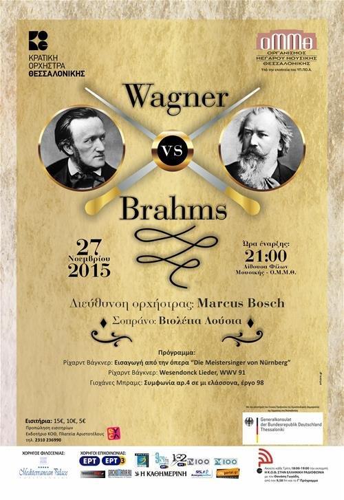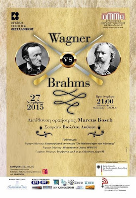 Η συναυλία είναι αφιερωμένη στη μουσική του γερμανικού ρομαντισμού με θεματική “Βάγκνερ εναντίον Μπραμς”.