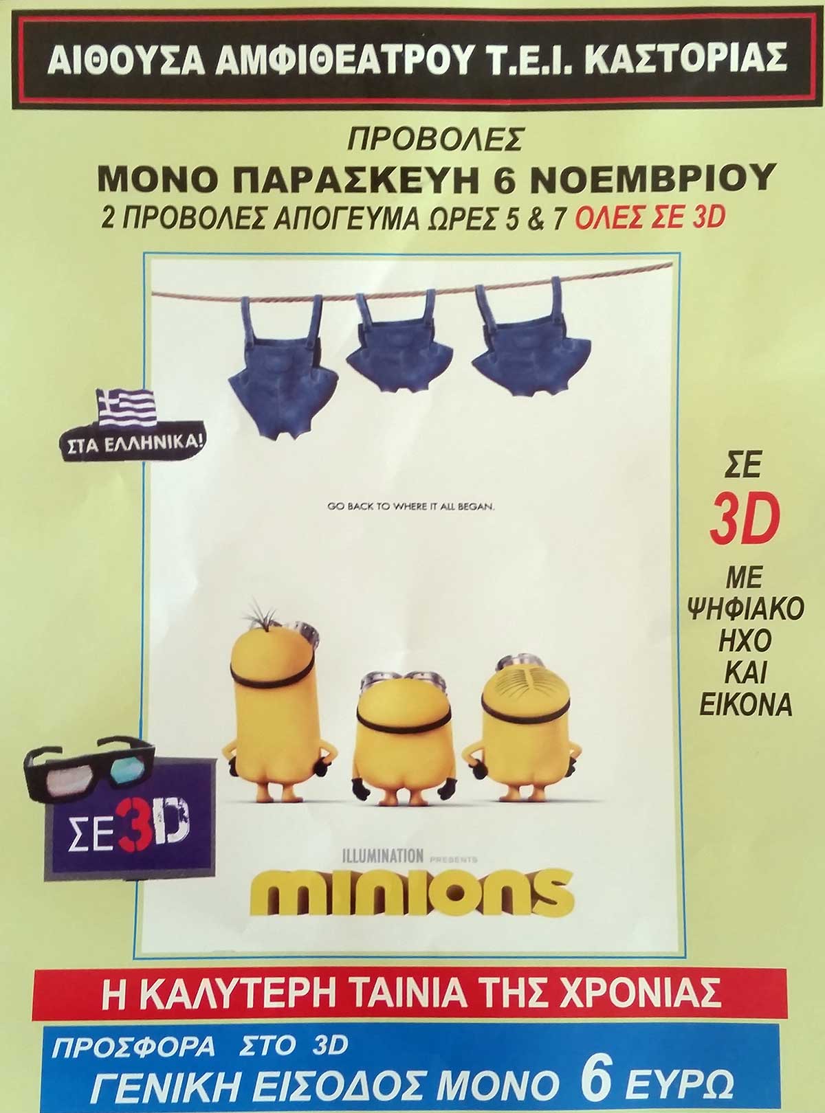 Την Παρασκευή θα υπάρξουν για μία ακόμη φορά 2 κινηματογραφικές προβολές με εισιτήριο 6€ σε δημόσιους χώρους του ΤΕΙ Δ. Μακεδονίας στην Καστοριά, στο Αμφιθέατρο των 500 θέσεων.