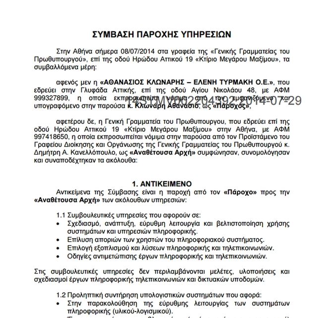 Συγκεκριμένα, σύμφωνα με τα επίσημα έγγραφα της Γενικής Γραμματείας του Πρωθυπουργού, από τον Ιανουάριο του 2014 μέχρι τις αρχές του 2015 είχε αναλάβει, ύστερα από την υπογραφή σχετικού συμφωνητικού (που υπέγραψε ο τότε προϊστάμενος του γραφείου Διοίκησης και Οργάνωσης του Μεγάρου Μαξίμου, Δημήτρης Κανελλόπουλος), την τεχνική υποστήριξη του Μεγάρου Μαξίμου και την προστασία της πρωθυπουργικής έδρας από επιθέσεις hackers.
