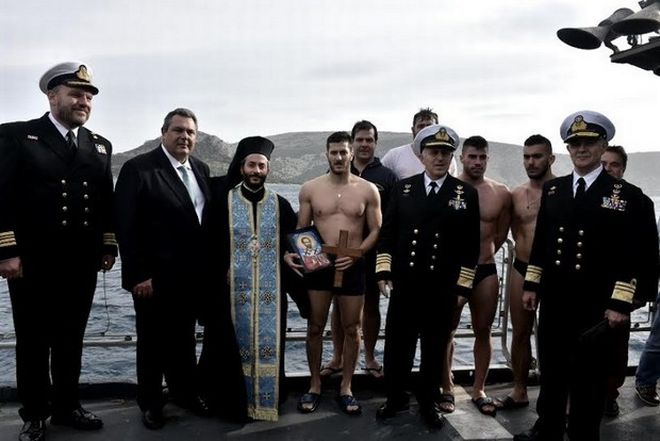 Τελέσαμε μαζί τον Αγιασμό των Υδάτων, με τις ευλογίες του Αιδεσιμότατου Ιερέα του Πολεμικού Ναυτικού, προκειμένου να στείλουμε ένα μήνυμα, ότι ακόμα και σε καιρό ειρήνης, το Πολεμικό Ναυτικό, όπως και το σύνολο των Ενόπλων Δυνάμεων, βρίσκεται σε μία συνεχή μάχη. Μία μάχη, την οποία πολλές φορές δεν συνειδητοποιούμε όσοι εν καιρώ ειρήνης απολαμβάνουμε την ασφάλεια που παρέχουν οι Ένοπλες Δυνάμεις”.