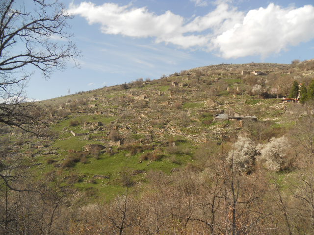 | Το δυτικό τμήμα του χωριού. Στο βάθος διακρίνονται τα χαλάσματα από τα πέτρινα σπίτια. |