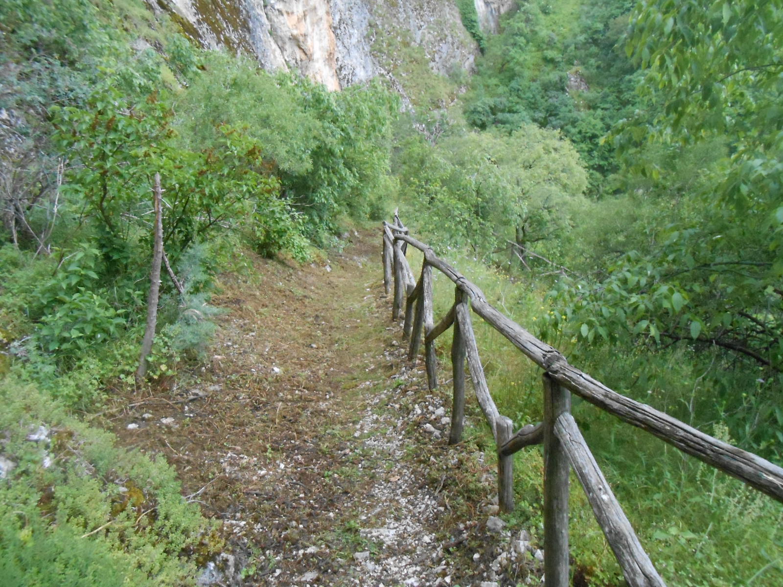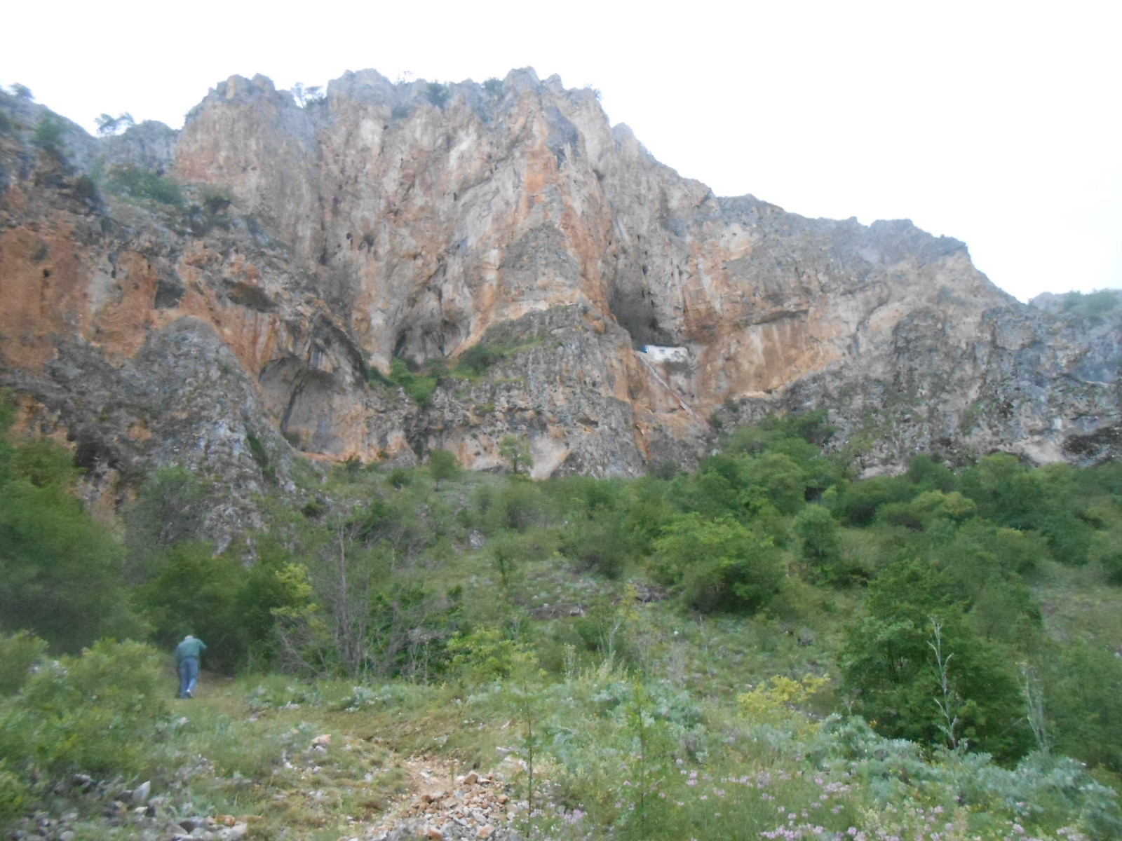 | Απέναντι άλλη σπηλιά,χωρίς πρόσβαση.Κάτω απ’αυτήν, μέσα στο πράσινο είναι σε στενή σπηλιά το Αγίασμα του Αη Νικόλα, απλησίαστο πλέον αφού βρέθηκε αρκούδα στη Σπηλιά |