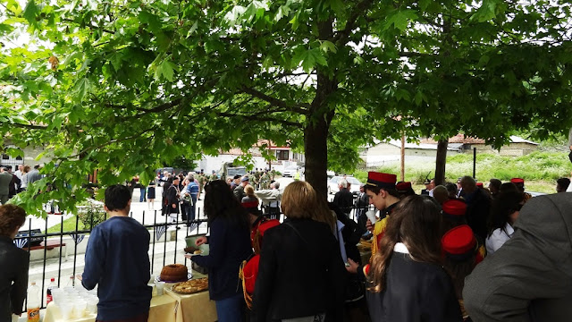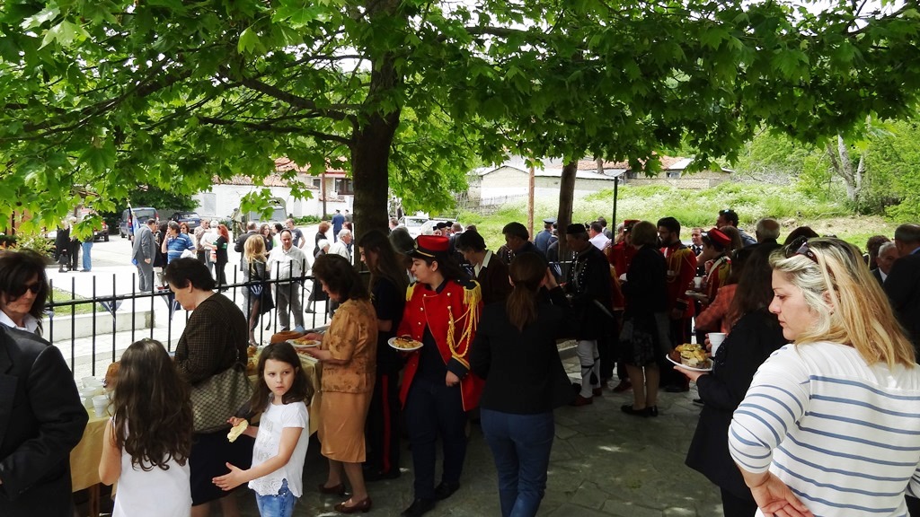 Παράθεση δεξίωσης δόθηκε στον αύλειο χώρο του Κοινοτικού Καταστήματος όπου οι παρευρεθέντες δοκίμασαν τοπικά εδέσματα φτιαγμένα από τις γυναίκες του χωριού.