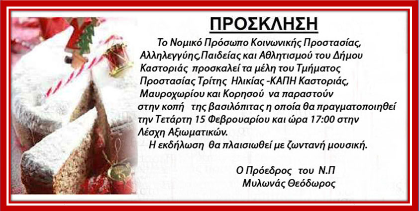 ΚΑΣΤΟΡΙΑ – Πρόσκληση για κοπή πίτας από το Νομικό Πρόσωπο Κοινωνικής Προστασίας,Αλληλεγγύης, Παιδείας και Αθλητισμούpita-myl