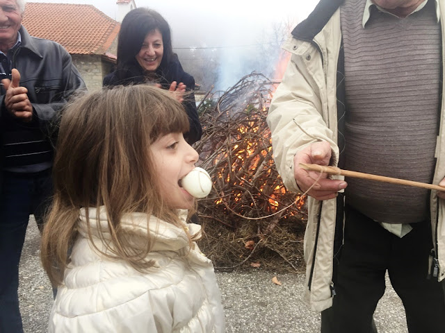 Γύρω από κάθε φωτιά στήνεται τρανός χορός με τη συνοδεία παραδοσιακών μουσικών οργάνων (χάλκινα), και προσφέρεται κρασί και τσίπουρο καθώς και παραδοσιακά εδέσματα όπως χαλβάς, για να είναι γλυκιά η Σαρακοστή. Κάθε γειτονιά προσπαθεί να ανάψει την μεγαλύτερη φωτιά σε ύψος και διάρκεια. Στο τέλος οι πιο τολμηροί πηδάνε πάνω από τη θράκα, για να καούν οι ψήλοι όπως λέγανε οι παλαιότεροι.