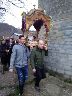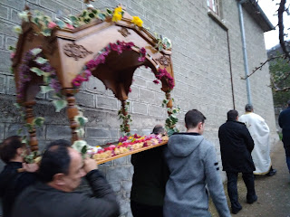 Και ξεκινά η περιφορά του επιταφίου. Πρόθυμοι όλοι οι άντρες του χωριού να τον κουβαλήσουν στους ώμους τους.