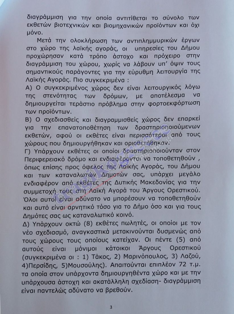 Εξασέλιδη επιστολή κατέθεσαν στο Δήμο Άργους Ορεστικού οι πωλητές της λαϊκής αγοράς