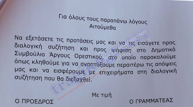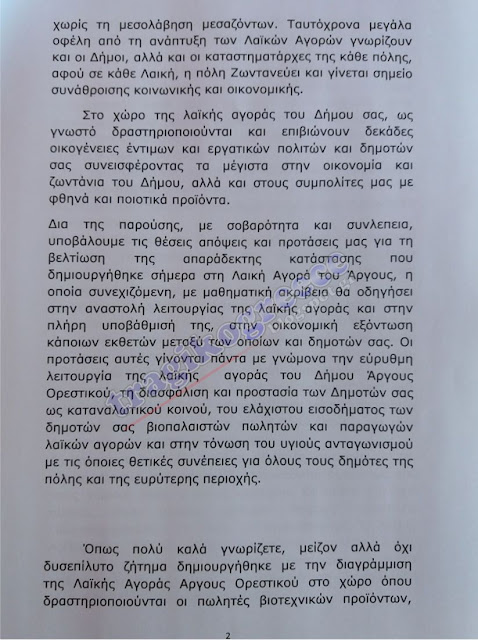 Δείτε την εξασέλιδη επιστολή που έδωσε σήμερα στο Δήμο Άργους Ορεστικού το Σωματείο Παραγωγών & Πωλητών Λαϊκών Αγορών Ν. Καστοριάς για την αλλαγή τοποθεσίας της λαϊκής αγοράς και βίντεο με τις δηλώσεις του προέδρου του Σωματείου Παραγωγών και Πωλητών λαϊκών αγορών Καστοριάς.