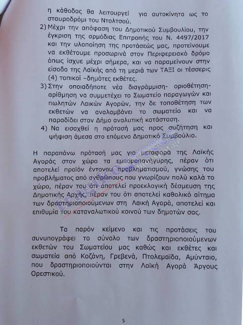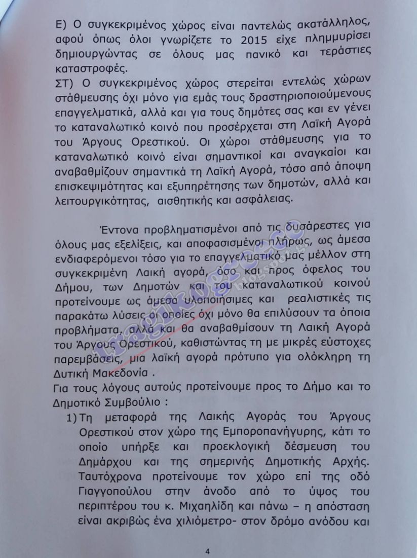 Εξασέλιδη επιστολή κατέθεσαν στο Δήμο Άργους Ορεστικού οι πωλητές της λαϊκής αγοράς