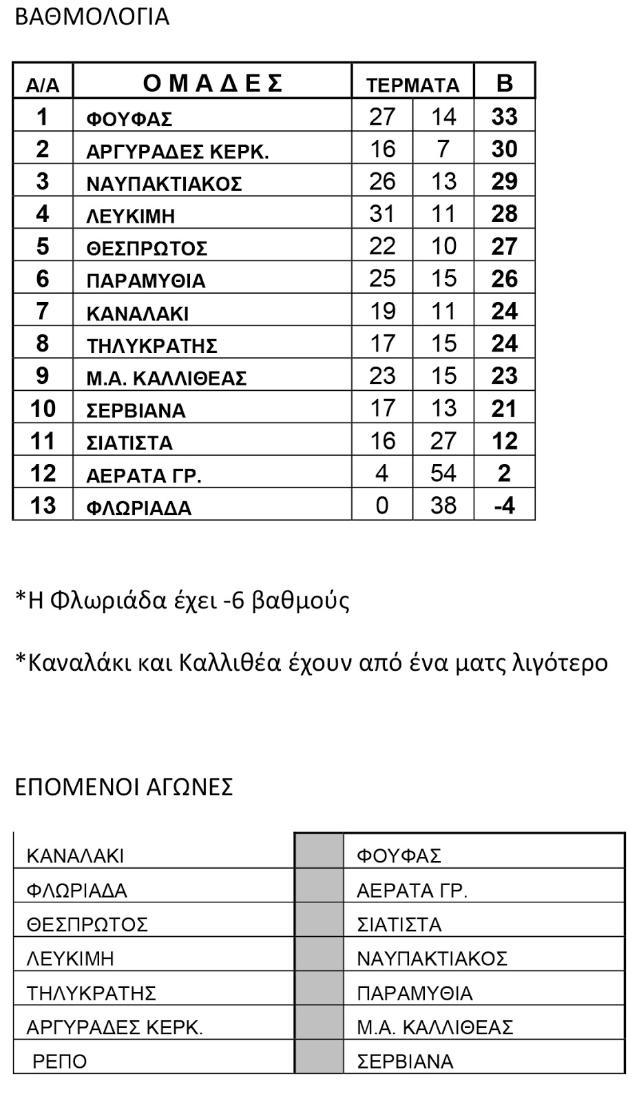 Μετά την θετική αυτή εξέλιξ και ειδικότερα της επιστροφής των 3 βαθμών σε συνδυασμό με το γεγονός ότι έχει κι ένα ματς λιγότερο, η ομάδα της Καλλιθέας, βελτίωσε την βαθμολογική της θέση και σίγουρα θα ταξιδέψει με άλλη ψυχολογία στην Κέρκυρα, στην δύσκολη εκτός έδρας αναμέτρησή της με τον Κρόνο Αργυράδων.