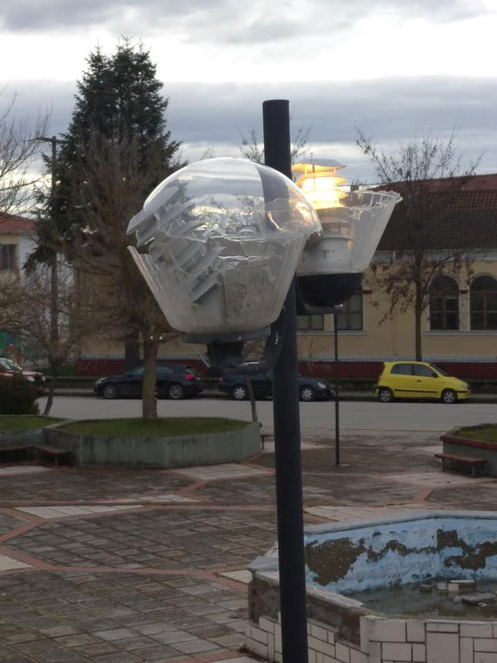 Στο ίδιο έργο θεατές, καθώς για χιλιοστή φορά το αναψυκτήριο και η παιδική χαρά στο Νέο Πάρκο της πόλης μοιάζουν με βομβαρδισμένο τοπίο. Άγνωστοι -προφανώς νεολαίοι- έχουν αναγάγει τους βανδαλισμούς του χώρου σε προσφιλή συνήθεια, έτσι για να έχουν κάτι να κάνουν όσο πίνουν τα ποτάκια τους. Αυτή τη φορά θα τους δώσουμε συγχαρητήρια. Προφανώς αυτό είναι το επίπεδό μας ( ; ) Αυτός είναι ο πολιτισμός μας ( ; ).