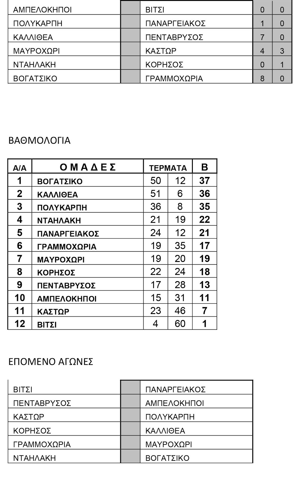 Μάλιστα η κυριαρχία των γηπεδούχων αποτυπώνεται και από τον αριθμό τερμάτων που σημείωσαν (24 υπέρ και μόλις 4 κατά), ενώ η έκπληξη της ημέρας σημειώθηκε στο γήπεδο των Αμπελοκήπων, όπου η ΑΕ Βιτσίου, με σύμμαχο την τύχη, απέσπασε τον πρώτο της βαθμό στο πρωτάθλημα, καθώς αναδείχθηκε ισόπαλη 0-0!