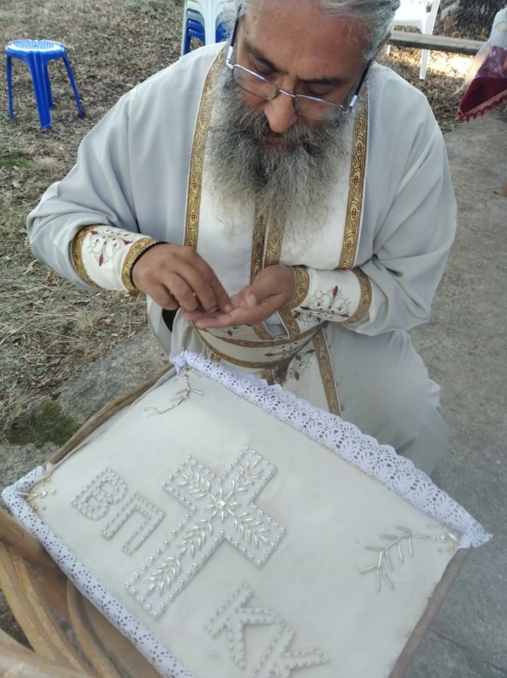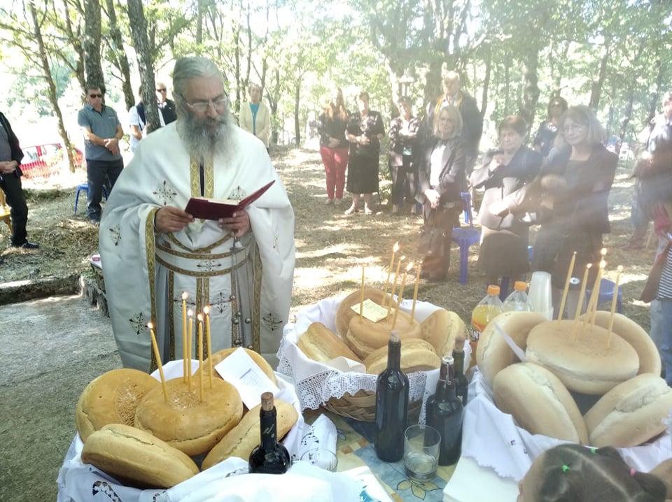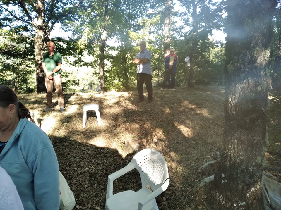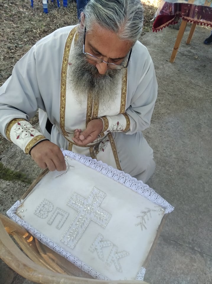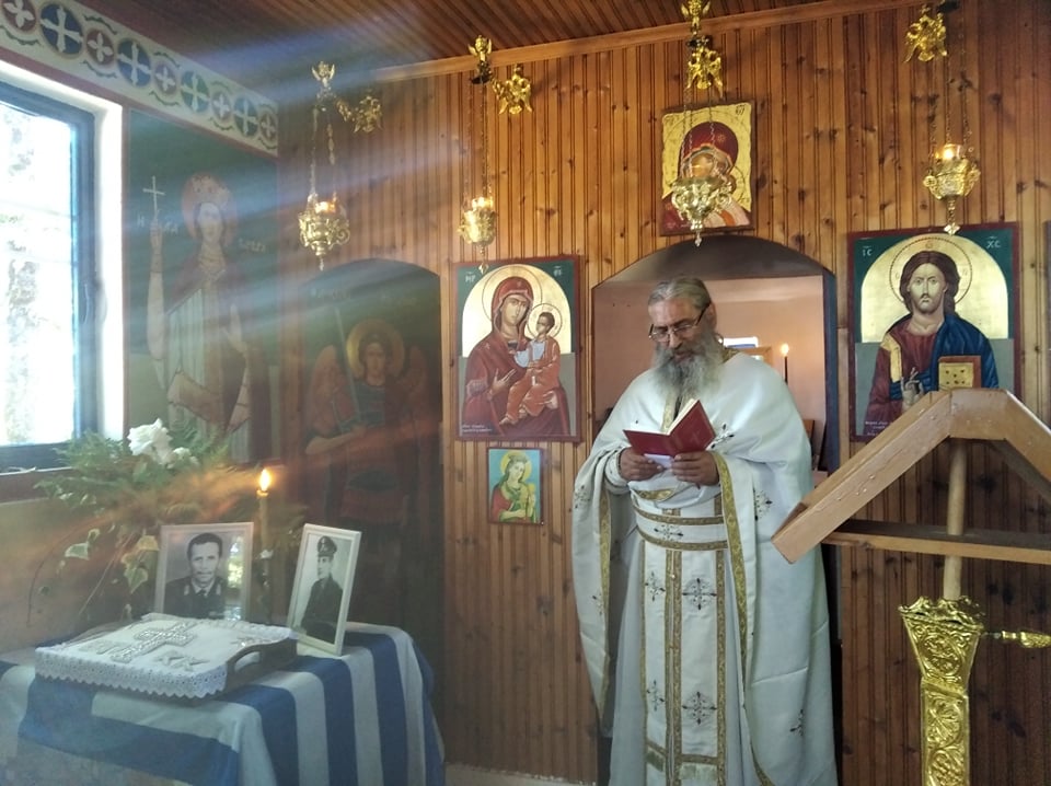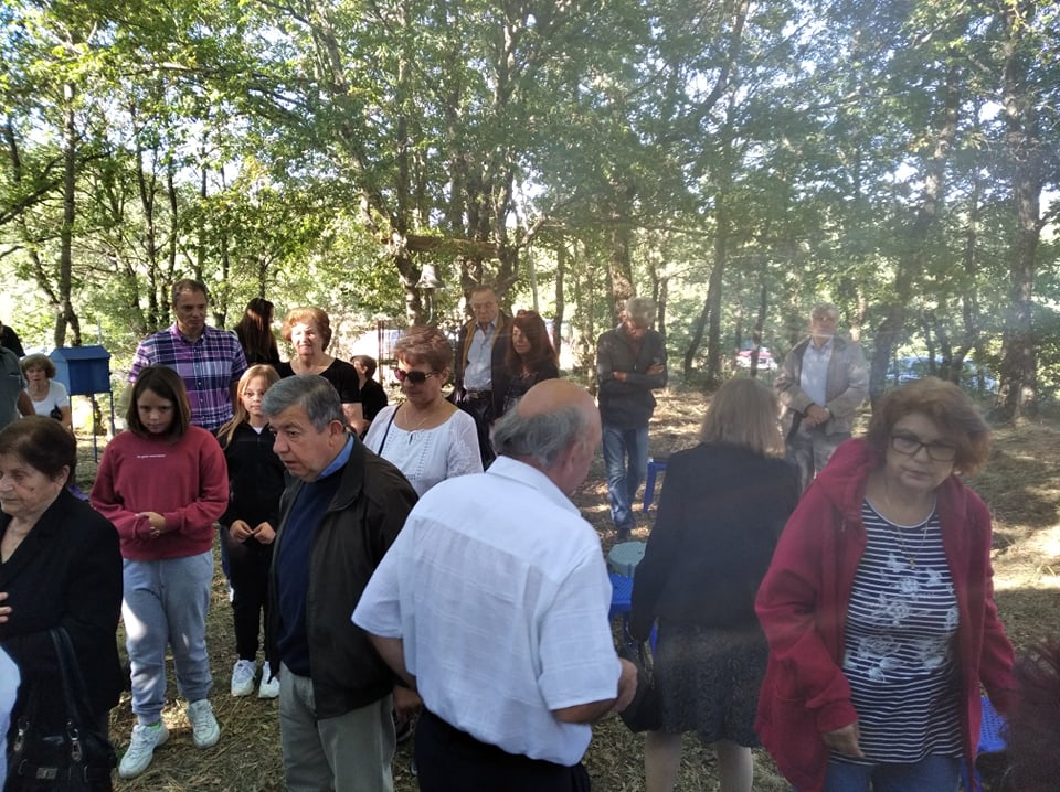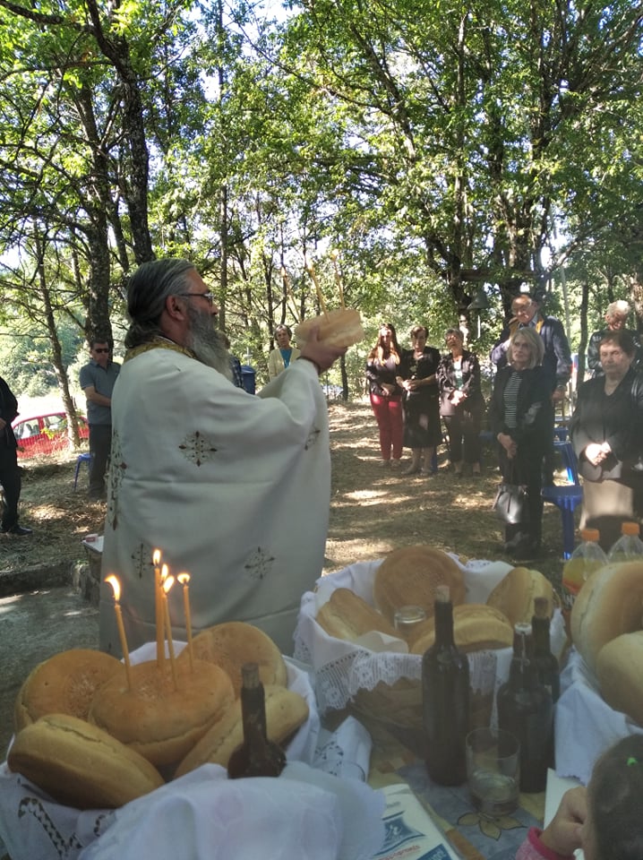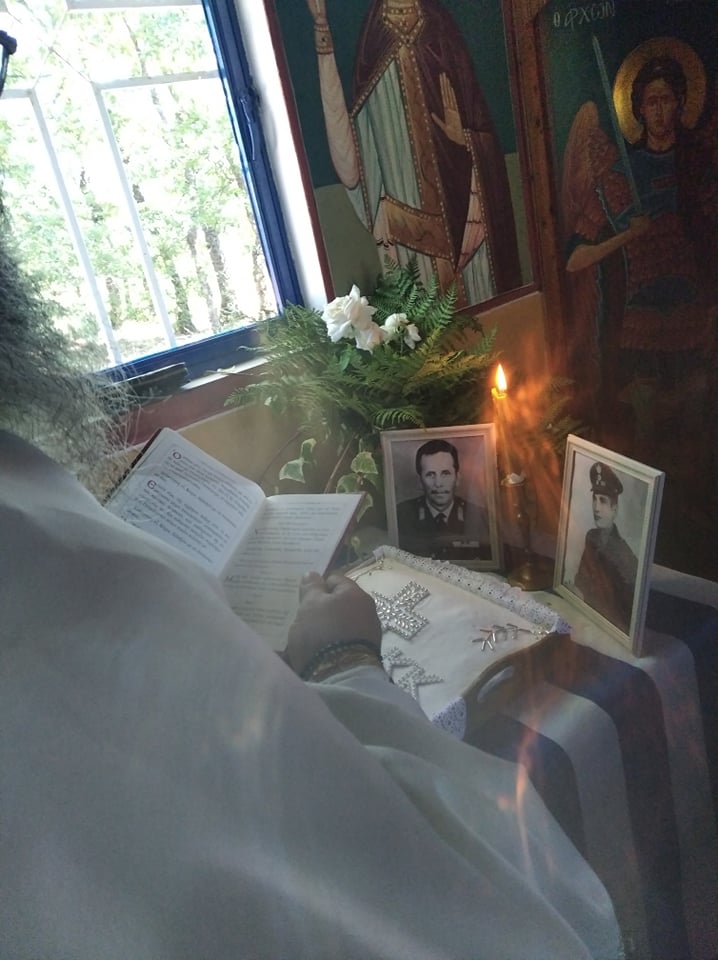 Ακόμα και ο ιερέας μας, ο παπα-Γιώργης θέλησε να λάβει πιο ενεργά μέρος στο μνημόσυνο. Διορθώνει τις ζημιές στα κόλλυβα των ηρώων που προκλήθηκαν λόγω κακοτράχαλου δρόμου.