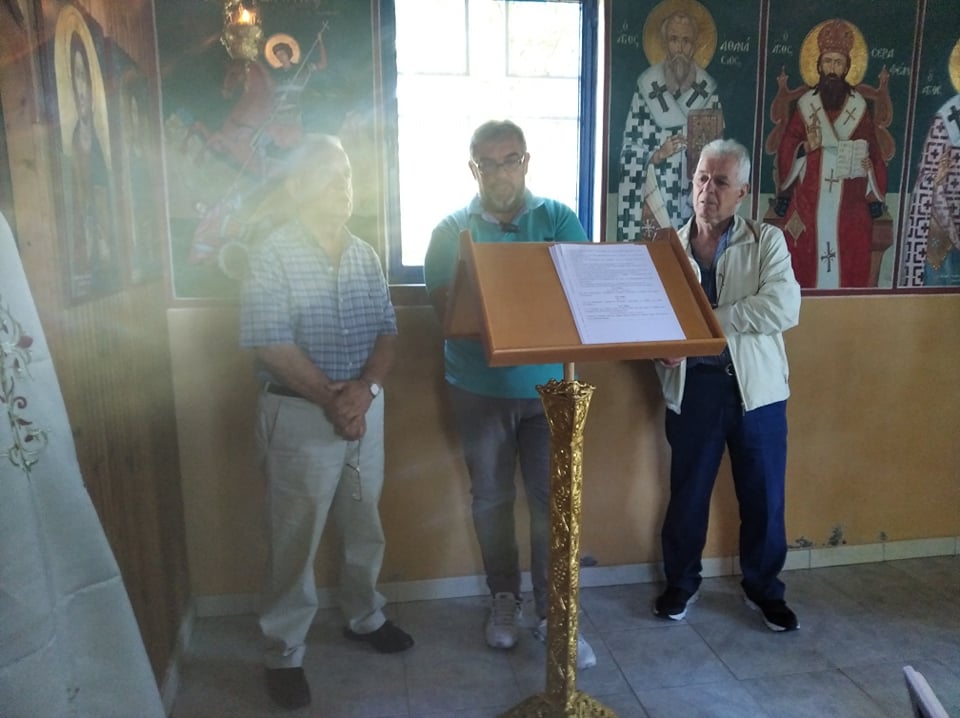 Κι αν λόγω COVID 19 δεν μπόρεσε να εισέλθει το ποίμνιο μέσα στο ξωκλήσι, εξήλθε η Θεία Λειτουργία.