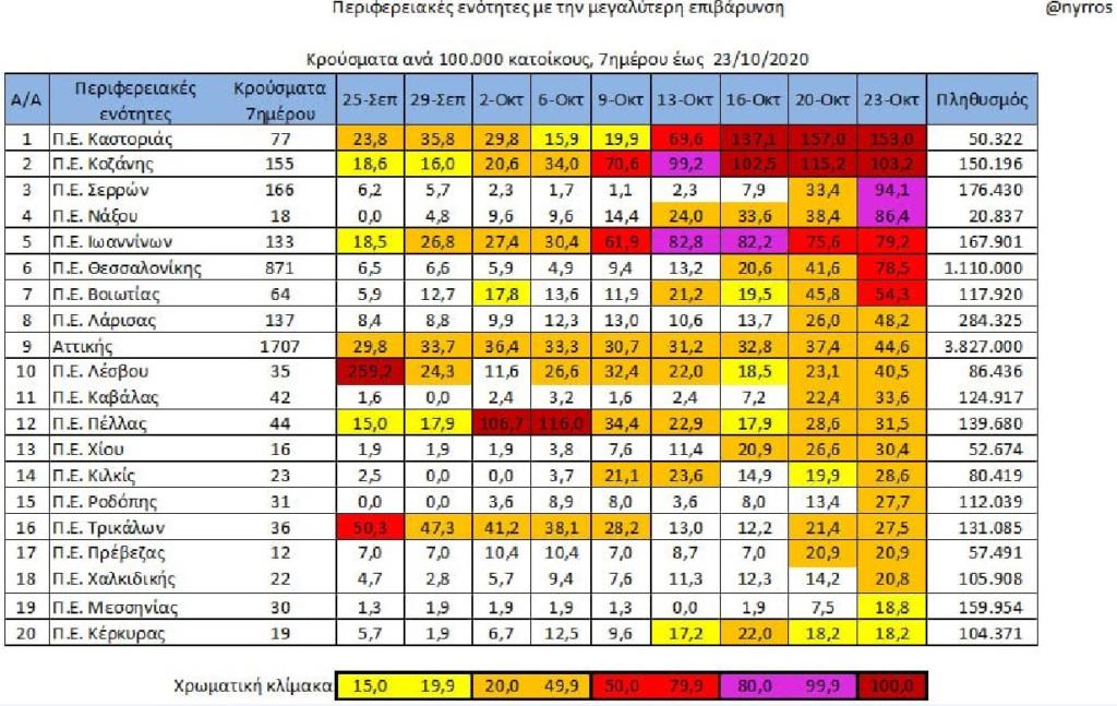 1. ΠΕ Καστοριάς: 153 κρούσματα ανά 100.000 κατοίκους – Κρούσματα 7ημέρου 77