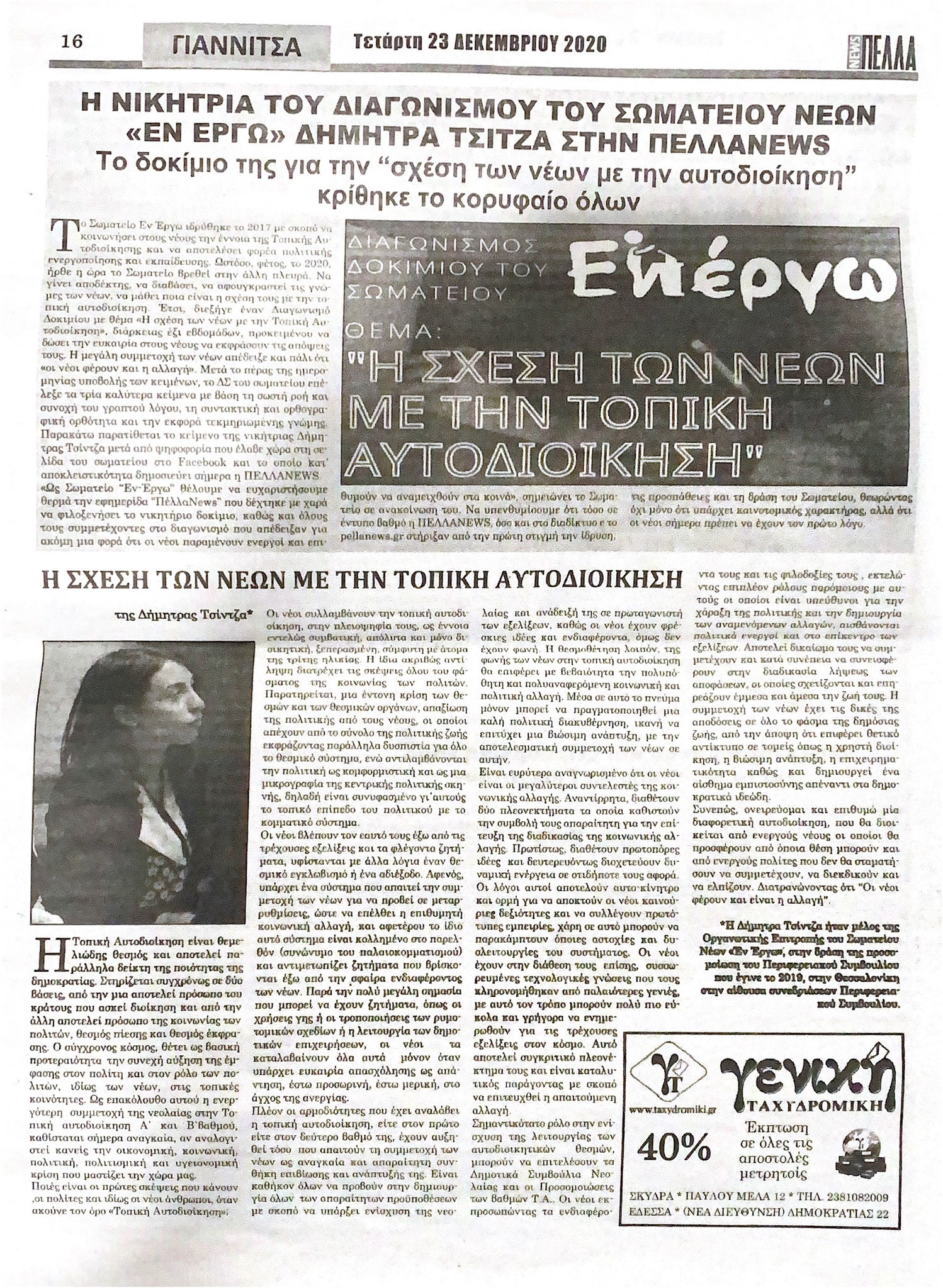 «ΕΝ ΕΡΓΩ» με θέμα «σχέση των νέων με την αυτοδιοίκηση» κατέκτησε η Καστοριανή φοιτήτρια Δήμητρα Τζίντζα.