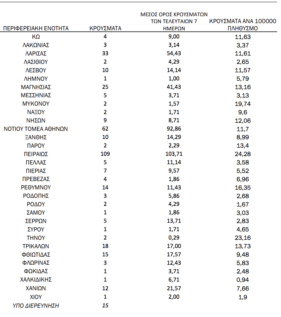 Η ενημέρωση από τον ΕΟΔΥ για τα κρούσματα κορονοϊού στην Ελλάδα κατά το τελευταίο 24ωρο
