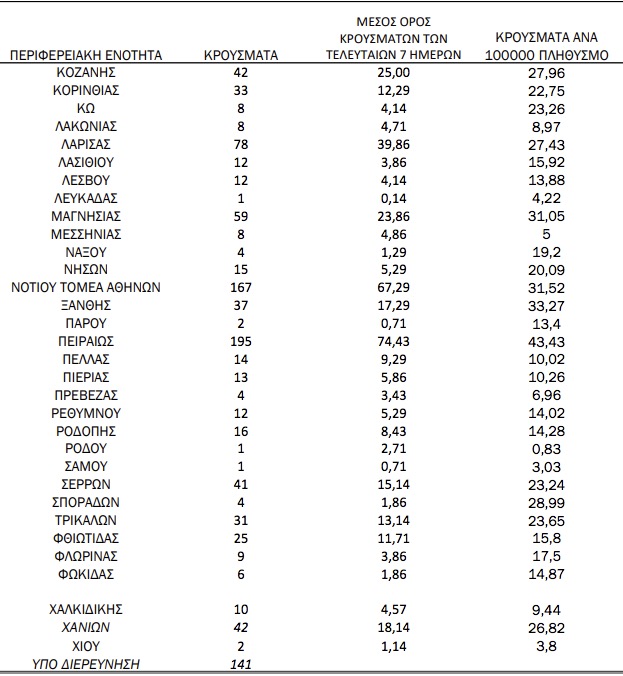 Αξίζει να σημειωθεί πως τα κρούσματα είναι αυξημένα σε σχέση με την περασμένη Πέμπτη (Μ. Πέμπτη). Σύμφωνα με πληροφορίες, λόγω Πάσχα, τα σημερινά δεδομένα κανονικά συγκρίνονται με τη Μ. Τρίτη που υπήρξε η τελευταία «σωστή» μέτρηση, γιατί ακολούθησαν οι ημέρες διακοπών.