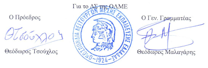 Το Δ.Σ. της Ο.Λ.Μ.Ε. χαιρετίζει τον αποφασιστικό αγώνα των εκπαιδευτικών, που παρά τις απειλές και την τρομοκρατία της κυβέρνησης, συμμετείχαν και φέτος με συντριπτικά ποσοστά στην απεργία αποχή της Ο.Λ.Μ.Ε.
