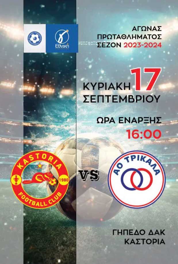 Η Καστοριά υποδέχεται τα Τρίκαλα, σε ένα ντέρμπι από τα παλιά που θα διευθύνει ο κ. Λαμπρίδης (Πέλλας) με βοηθούς τους Αδραμάνη (Πέλλας) και Καλλινιώτητου ΣΔ Ημαθίας, ενώ παρατηρητής θα είναι ο Παναυτσίδης ΣΔ Κοζάνης.