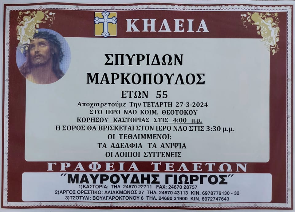 Σε ηλικία 55 ετών «έφυγε» από τη ζωή ο Σπυρίδων Μαρκόπουλος